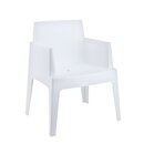 ,La chaise BOX avec accoudoirs est fabriquée en polypropylène (PP) renforcé (avec fibre de verre) ce qui lui garantit une très grande résistance à la charge. Sa forme et ses couleurs vives apportent à ce modèle beaucoup de modernité et de peps. Un modèle empilable très pratique d'utilisation et d'entretien, facile à nettoyer.