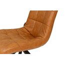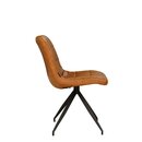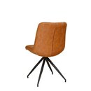 La chaise CORUTO est fabriquée avec un piètement étoile en métal noir mat. L'assise est rembourrée avec un revêtement en simili cuir vintage camel avec coutures décoratives (norme BS - non-allumabilité) effet matelassé.