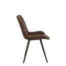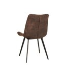 La chaise HYSIL est fabriquée avec un piètement en métal noir mat. La coque d'assise est rembourrée avec un revêtement bi-matière aspect cuir retourné chocolat sur l'arrière du dossier et similicuir chocolat (norme BS - non-allumabilité). Présence de belles coutures d'ornement.