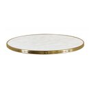 Plateau de table rond diamètre 60cm avec cerclage laiton TOPALIT décor marbre de gêne blanc